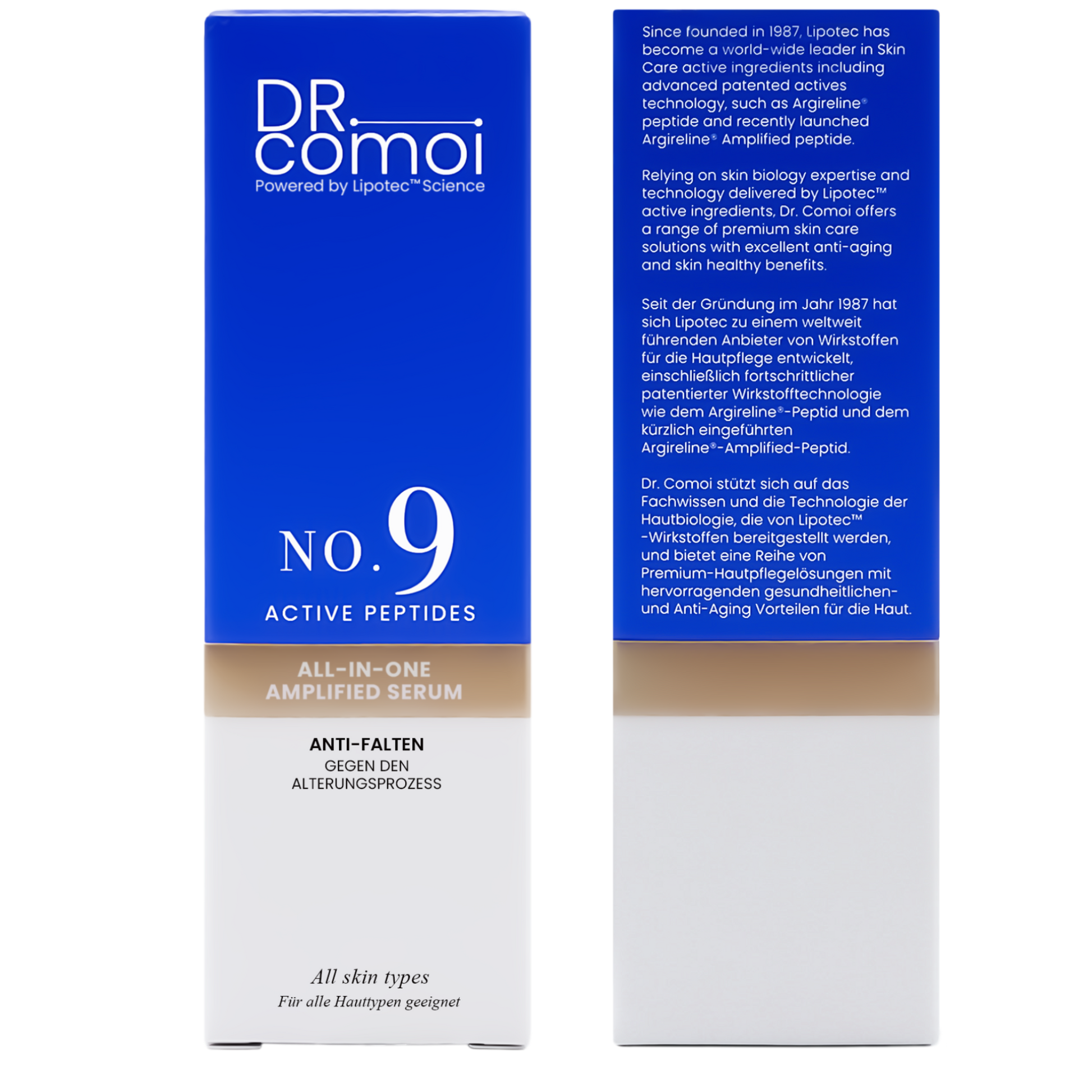 Das biomimetische 3D Anti-Aging mit straffender Sofort- und Langzeitwirkung und für zellfrische Signale mit Weckruffunktion heißt N°9 All-In-One Amplified Serum. Höchstdosiert mit patentierten, technologisch aufbereiteten Wirksubstanzen aus der bahnbrechenden Pharma-Forschung und im dermatest-Epikutantest „sehr gut“ bewertet, entwickelt das hypoallergene 24h Basis-Serum hautverjüngende Multi-Regeneration bei signifikanten Alterungszeichen und unmittelbare Botox-like-Effekte bei ausgeprägten Linien und mitteltiefen bis tiefen Expressionsfalten ab Hautalter 30+. Unser med-ästhetischer Serum-Superstar verfolgt zirkadiane biochronologische Schönheitsansätze.